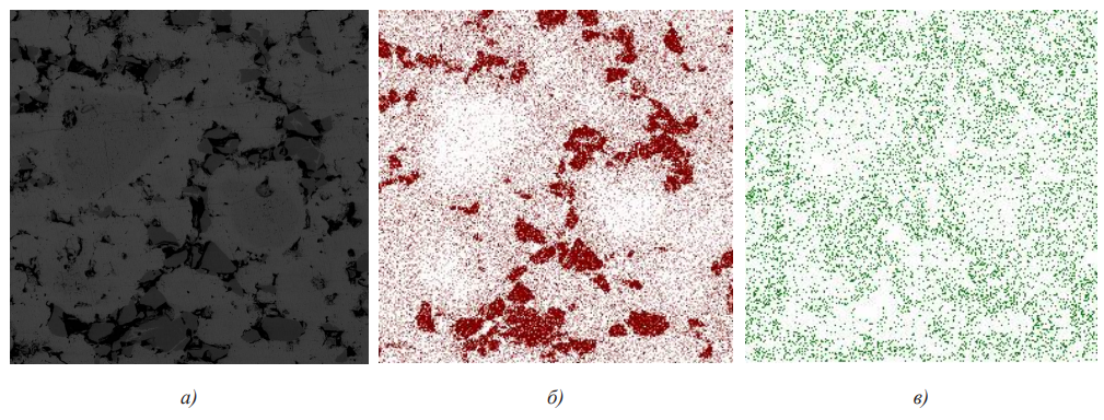 – на неоднородных по химическому составу участках (рис. 4 в).