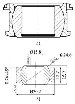 Introduction. Due to the economic and technical significance of the task of extending the operational lifespan of hinge joints, which are components of many machines and mechanisms, it is essential to continuously research materials and manufacturing techniques. For instance, spherical hinge joints, which effectively absorb shock loads, are widely employed in vehicle suspensions [1]. At the same time, they are made of chromium-nickel corrosion-resistant steels, which have low wear resistance [2]. The choice of this metal for manufacturing spherical hinge parts is based on its performance characteristics during prolonged contact with aggressive media (salt solutions, moisture, and wear products). Powder metallurgy methods [4] are used to improve the tribotechnical properties of friction units made of chromium-nickel steels [3]. However, the production technology depends on the chemical composition of the material [5], the operating conditions of the machinery, the design of the friction units, and other factors [6]. Cold stamping is one option for forming the outer cage parts of spherical hinges [7] from sintered cylindrical blanks, with the inner surface coated with a solid lubricant [8] (Fig. 1).