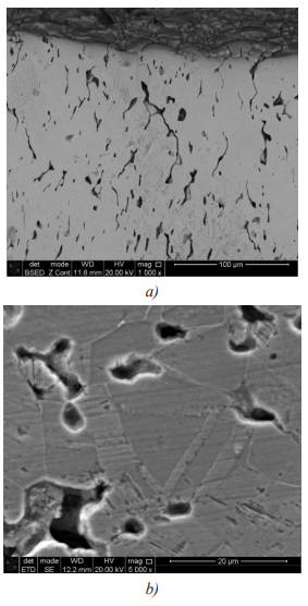 of 18–20% (Fig. 4 a), cracks appear at the interparticle boundaries with increased concentrations of Cr2O3, CrO2 (Fig. 4 b). The analysis of the results from mapping the crack mouth showed that microcracks were developing: