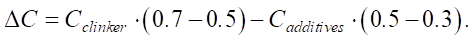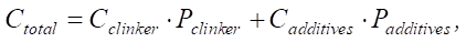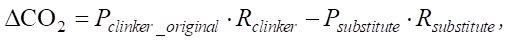 where Pclinker_original — specific clinker emissions (765.2 kg CO2/t); Rclinker — initial clinker fraction (70% = 0.7);