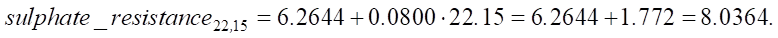 Discussion. The model explains 98.3% of the variance in sulfate resistance through changes in silicon dioxide content. The model remains robust with an increased number of observations, as indicated by the adjusted R2 of 0.981.