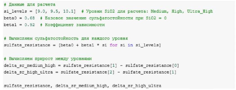 Conclusion. SiO2 content is the key factor in enhancing sulfate resistance. This approach offers a new methodological perspective by overcoming the shortcomings of the GOST standard. Variations in slag composition and the absence of thermal activation may limit the model's reproducibility, necessitating further research.