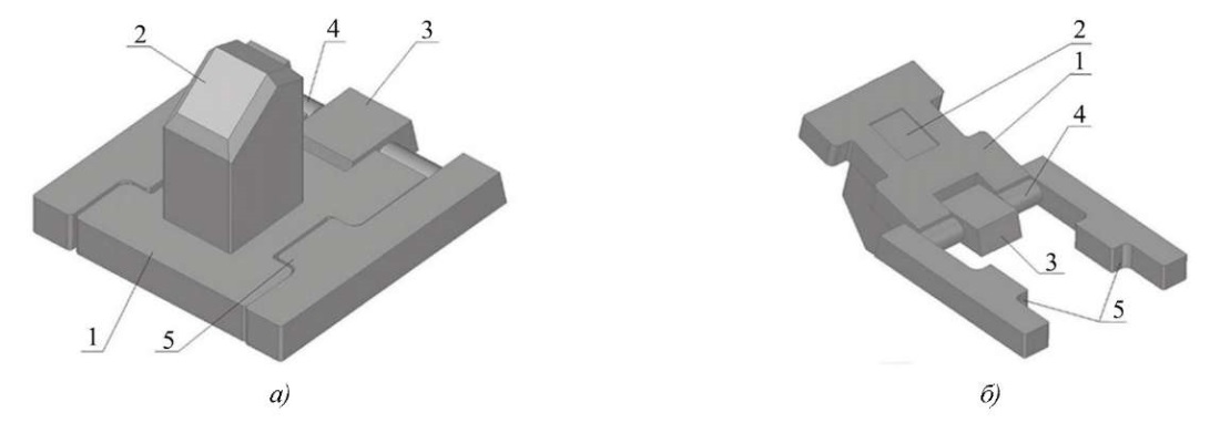 1 — основание упора; 2 — упор; 3 — петля (шарнир); 4 — палец; 5 — плита упора