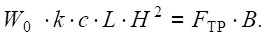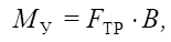 где FТР — сила трения на поверхности фитинга и упора; В — плечо приложения, т. е. ширина контейнера по осям фитингов.