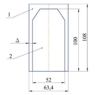 1 — габарит отверстия фитинга; 2 — габарит упора