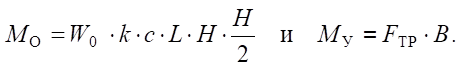 При отсутствии дополнительных креплений устойчивость можно найти из равенства опрокидывающего контейнер момента МО и удерживающего МУ (рис. 8).