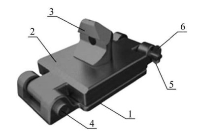 1 — плита упора; 2 — основание упора; 3 — упор; 4 — палец; 5 — стержневой замок; 6 — блокиратор случайной разблокировки